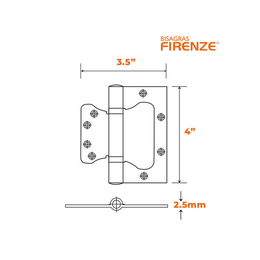 Bisagra firenze 3.5"x3.5"x2.5mm (3 piezas) acerado