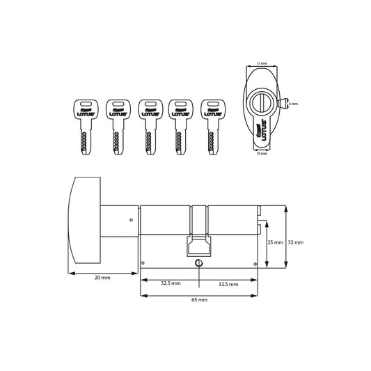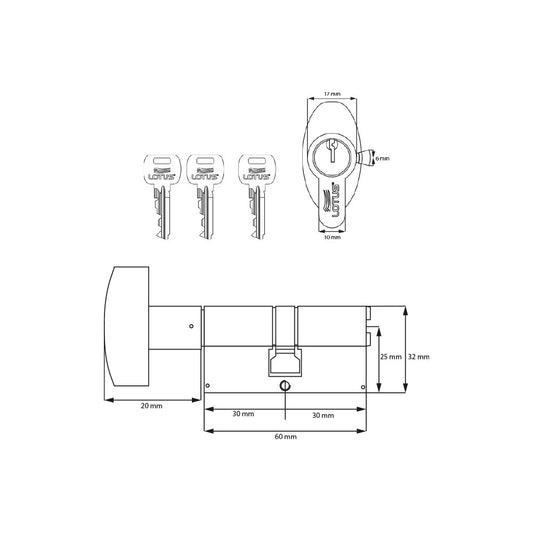 Cilindro 60mm satin llave-mariposa 3 llaves