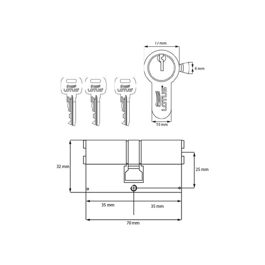 Cilindro 60mm bronce pulido llave-llave 3 llaves