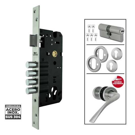 Kit cerradura 4 pines 2 golpes ss304 bocallave decorativo manija cagliari
